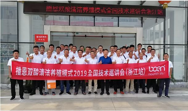 2019年8月19日—20日,播恩雙酸清潔養(yǎng)殖模式2019全國技術巡講會(浙江站)在湖州市順利召開。此次會議由東部戰(zhàn)區(qū)、北部戰(zhàn)區(qū)聯(lián)合舉辦,共計邀請安徽、江蘇、浙江、山東等地的50余位客戶,播恩集團副總裁曹劍波、播恩集團顧問章紅兵教授、東部戰(zhàn)區(qū)總監(jiān)簡毅科、北部戰(zhàn)區(qū)總監(jiān)白林杰等相關領導出席會議。