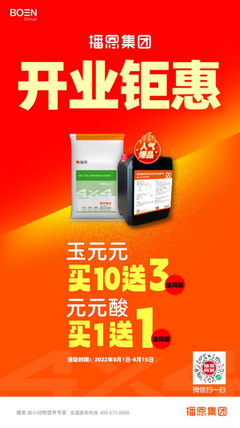 8月1日,播恩集團正式入駐電商平臺,播恩元元電商官方直營店正式開業(yè)。為回饋養(yǎng)殖戶,讓更多畜禽養(yǎng)殖人享受到清潔養(yǎng)殖的福利,播恩特推出核心的元元電商雙酸清潔系列產(chǎn)品,首波商品包括了:酸的飼料「玉元元」四驅(qū)雙酸發(fā)酵料+酸的環(huán)境「元元酸」酸化劑,全階段適用,是清潔養(yǎng)殖、助力消化、提升健康的優(yōu)勢選擇。