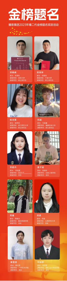 致辭結(jié)束后,就來(lái)到了最激動(dòng)人心的金榜題名頒獎(jiǎng)環(huán)節(jié)。本次活動(dòng),播恩集團(tuán)為今年考取大學(xué)的10位播二代頒發(fā)了「播二代金榜題名獎(jiǎng)學(xué)金」。
