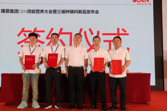 緊接著佛山工廠(chǎng)區(qū)曾慶昌總監(jiān)的主持下,曹總與宣威永和總經(jīng)理李家嚴(yán)、華昕集團(tuán)董事長(zhǎng)徐桂林、福安市博成飼料經(jīng)營(yíng)部總經(jīng)理薛光平、新羅區(qū)鑫農(nóng)飼料經(jīng)營(yíng)部總經(jīng)理俞石金舉行了簽約儀式。場(chǎng)內(nèi)一片歡騰,積極下單的客戶(hù)絡(luò)繹不絕,顯示出對(duì)新產(chǎn)品的高度認(rèn)可和期待。