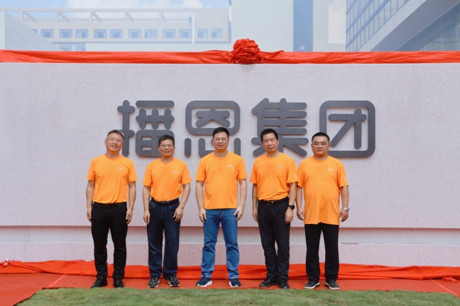 鄒新華董事長、曾紹鵬副總裁、肖九明董事、曹劍波副總裁、徐曄副總裁共同為播恩集團(tuán)全球研發(fā)中心及南方本部揭牌