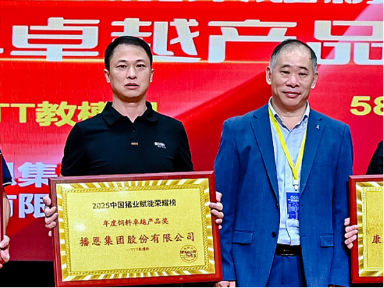 10月17日,2025中國豬業(yè)賦能大會(huì)暨賦能榮耀頒獎(jiǎng)盛典在長沙隆重舉行。超過200位行業(yè)領(lǐng)導(dǎo)、專家、企業(yè)家等蒞臨本次盛典,并共同見證了2025中國豬業(yè)賦能榮耀榜獲獎(jiǎng)名單的公布。其中,播恩集團(tuán)TTT教槽料榮獲2025年度飼料卓越產(chǎn)品獎(jiǎng)。