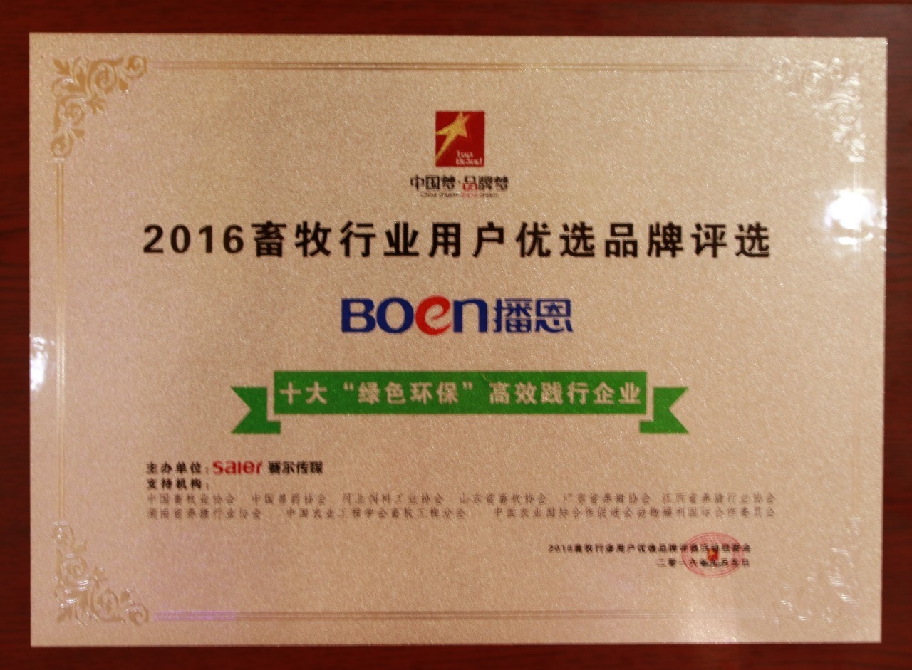 ▲播恩集團(tuán)榮獲十大“綠色環(huán)?!备咝й`行企業(yè)