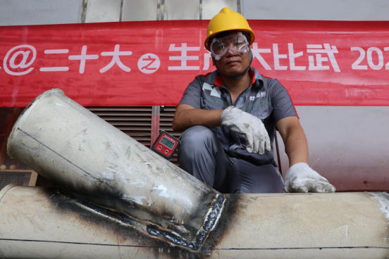 佛山工廠黃允賢于電氣焊技能項(xiàng)目現(xiàn)場(chǎng)