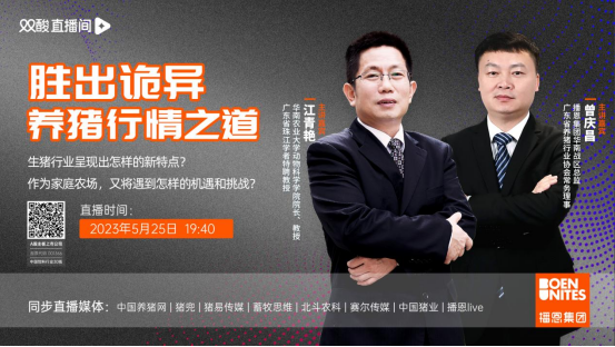 5月25日,由播恩集團(tuán)主辦的雙酸系列直播第42期《勝出詭異養(yǎng)豬行情之道》節(jié)目如期進(jìn)行。華南農(nóng)業(yè)大學(xué)動(dòng)物科學(xué)學(xué)院院長(zhǎng)、教授/博士生導(dǎo)師/廣東省珠江學(xué)者特聘教授/廣東省特制計(jì)劃教學(xué)名師/廣東省動(dòng)物營(yíng)養(yǎng)調(diào)控重點(diǎn)實(shí)驗(yàn)室主任江青艷,以及播恩集團(tuán)華南戰(zhàn)區(qū)總監(jiān)/廣東省養(yǎng)豬行業(yè)協(xié)會(huì)常務(wù)理事曾慶昌,圍繞“詭異養(yǎng)豬行情”進(jìn)行了討論和分享,本篇帶您回顧專家們的精彩觀點(diǎn)。