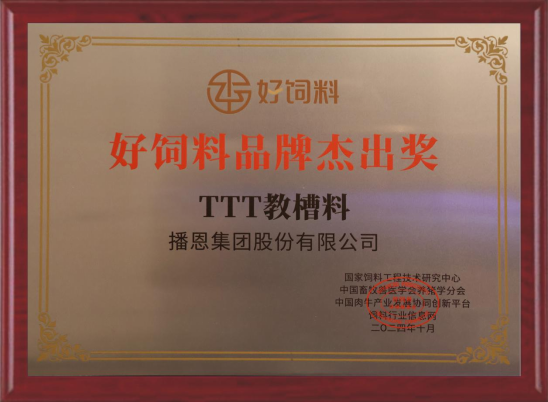 播恩集團(tuán)TTT教槽料榮獲2024“好飼料品牌·杰出獎(jiǎng)”
